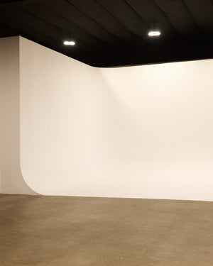 Welcome to our Cyc Wall Studio, a versatile space designed to elevate your creative projects. This expansive area features a seamless white cyclorama wall, providing a clean backdrop for photoshoots and videoshoots, making it the ideal environment for your artistic vision to come to life.