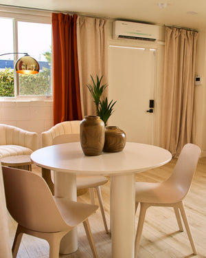 Welcome to the Indoor Set, a space designed to inspire creativity and productivity. Featuring a cream limewash wall, roll-up access for natural lighting, and comfortable furnishings, this space is perfect for elevated photo and video shoots, brainstorming sessions, co-working, or gatherings. The versatile layout and thoughtful amenities make it ideal for both creative projects and collaborative work.